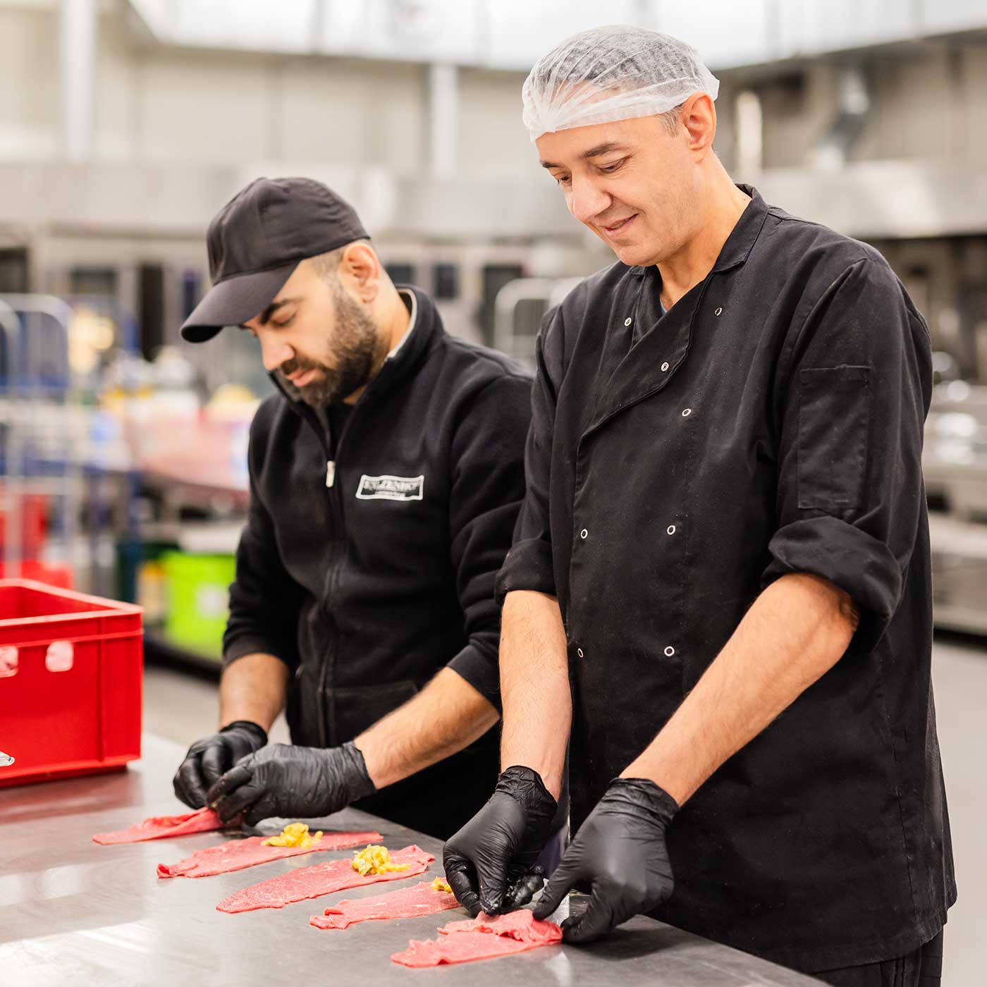 Jeder hat hier einen Bereich gefunden, in dem er oder sie zum Erfolg des Unternehmens beiträgt: von Buchhaltung und Marketing, über Vertrieb, Personalwesen und Equipment bis hin zur Fleischerei selbst. Helmut-Christian Stolzenhoff absolvierte dafür extra eine Fleischerei-Ausbildung, um das Handwerk von der Pike auf zu erlernen.