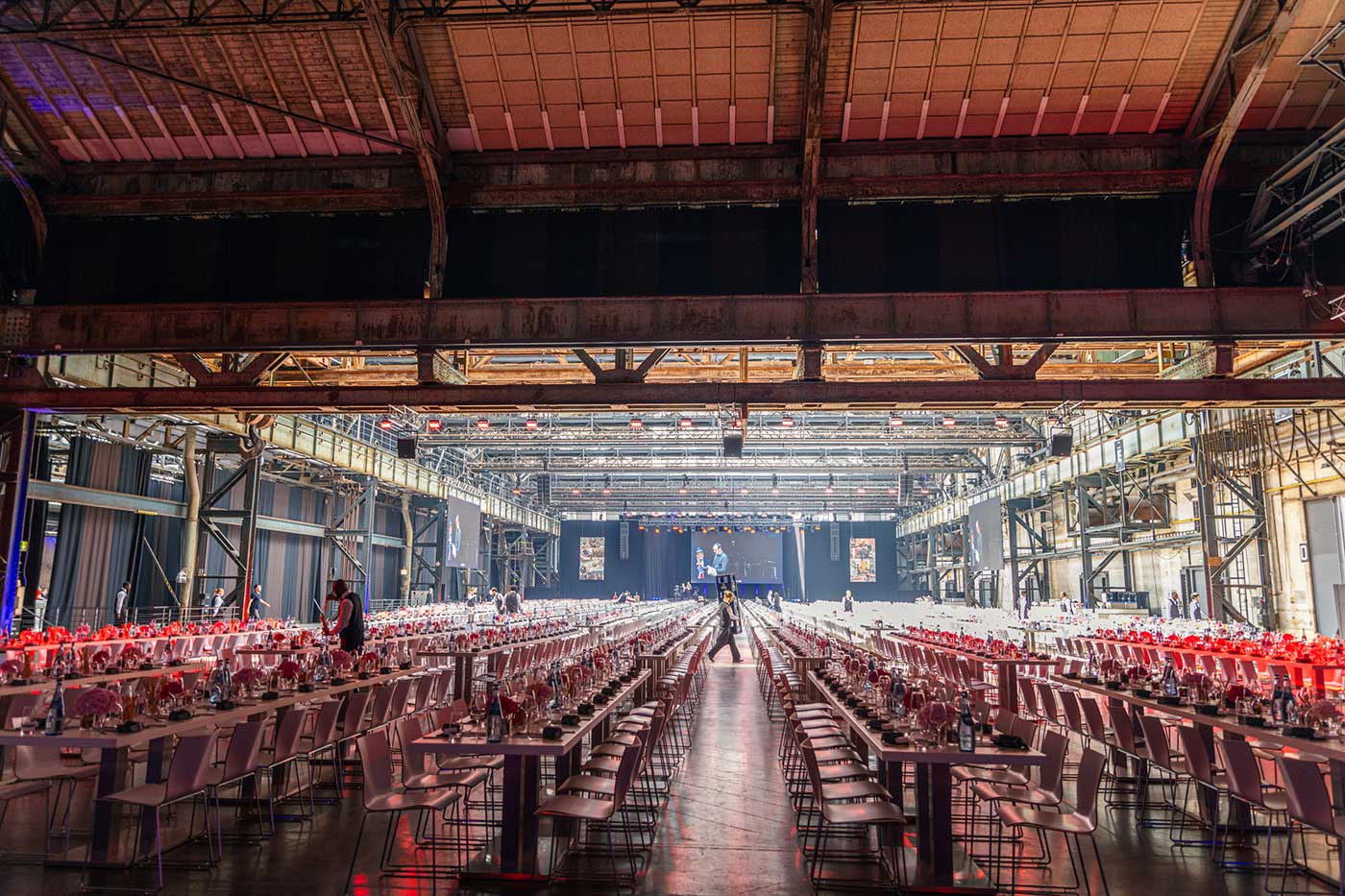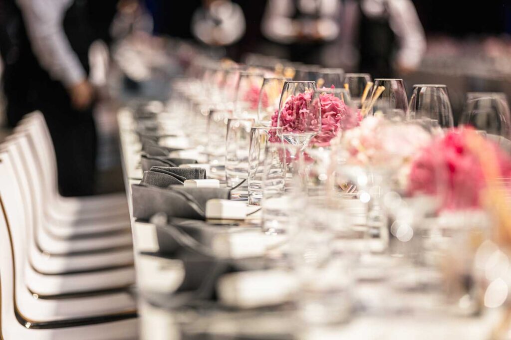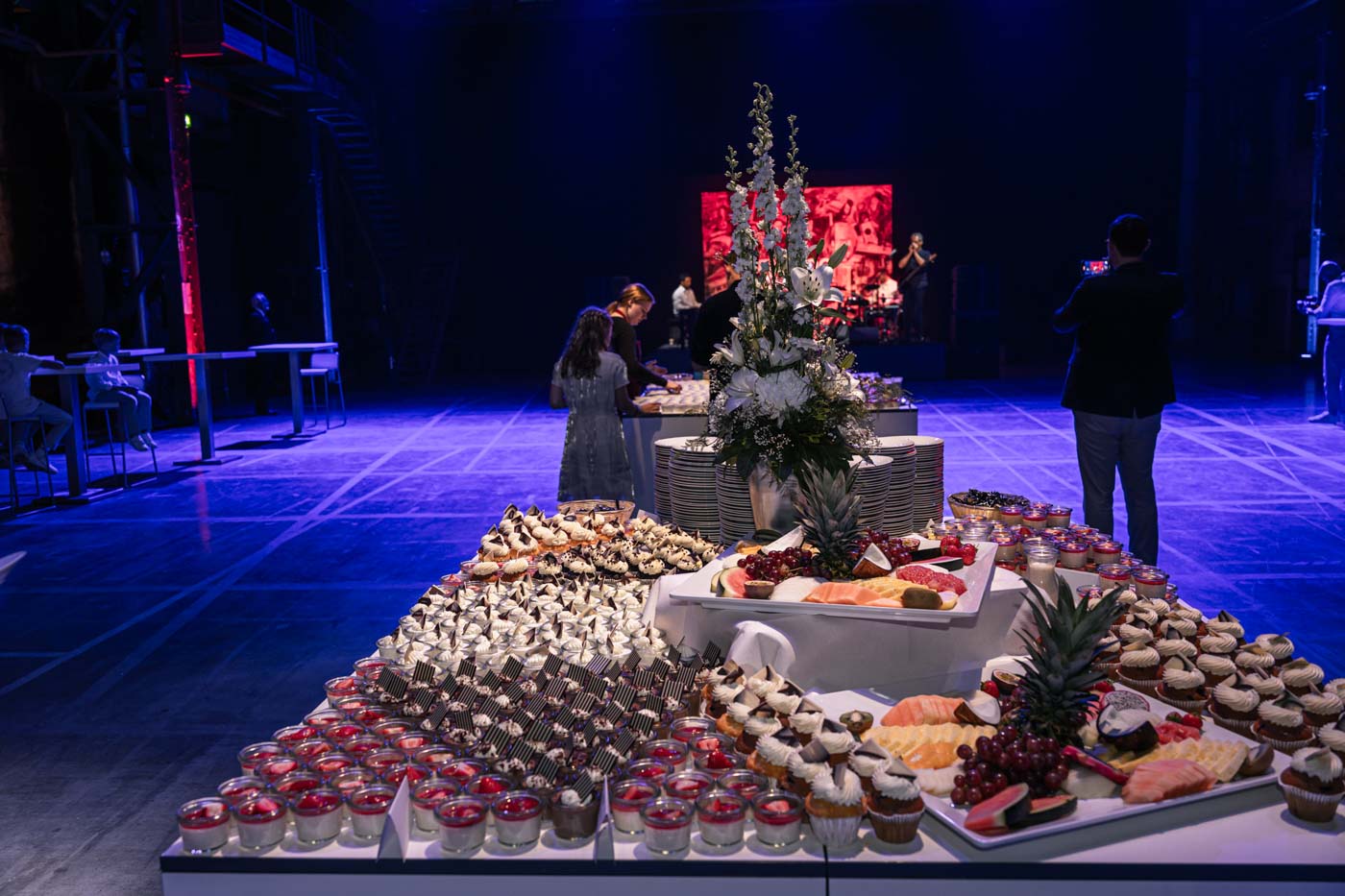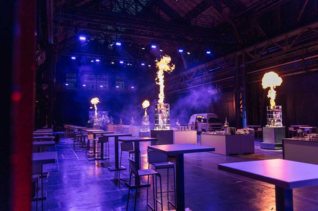 Bei der Veranstaltung wurden die Gäste bereits zum Empfang von einem Walking Act begrüßt, danach wurde Flying Fingerfood für einen lebendigen und eleganten Start gereicht. Am Tisch wurden zusätzlich Süßigkeiten als kleine Highlights eingesetzt. Das Buffet wurde mehrfach gespiegelt, um kurze Wege zu gewährleisten und allen Gästen ein zügiges und entspanntes Genusserlebnis zu ermöglichen.