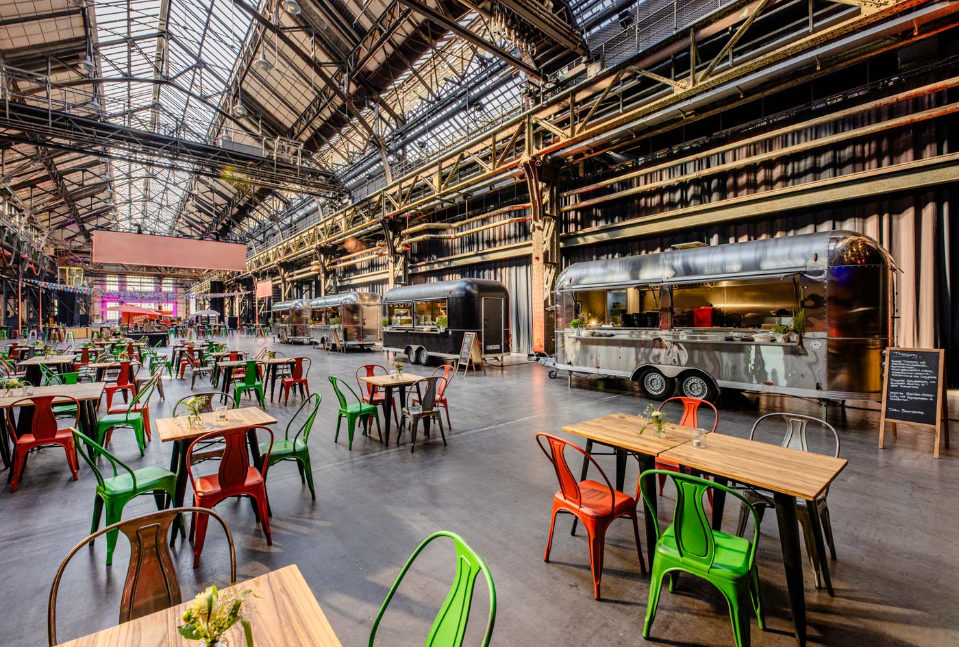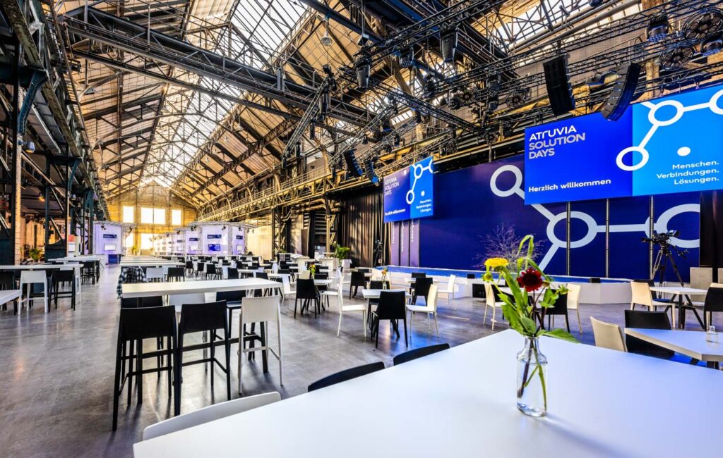 Das Ambiente der Halle 1 mit Ihren Stahlträgern und der großen Westfassade mit den Sprossenfenstern sowie der Charme der Vergangenheit machen die Halle immer wieder einen Besuch wert und lassen jede Veranstaltung zu einem besonderen Erlebnis werden.