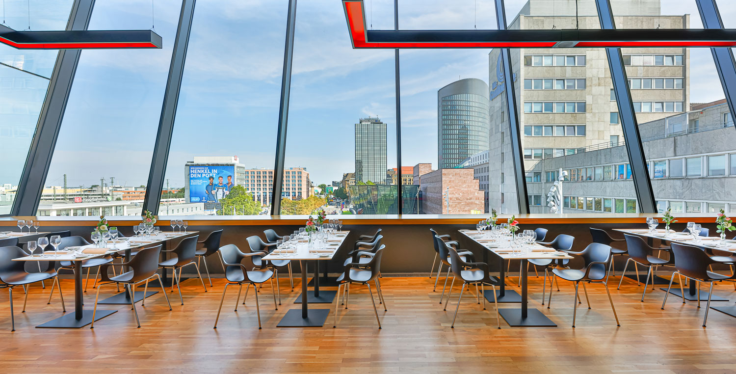 In der Eventlocation N11 feiern Sie mit bis zu 100 Personen in einem außergewöhnlichen Ambiente mit Blick über das rege Treiben der Dortmunder Innenstadt. Der loftartige Raum besticht durch sein überdimensionales, abdunkelbares Panoramafenster, einen großzügigen Thekenbereich und flexible Mobiliarmodule.