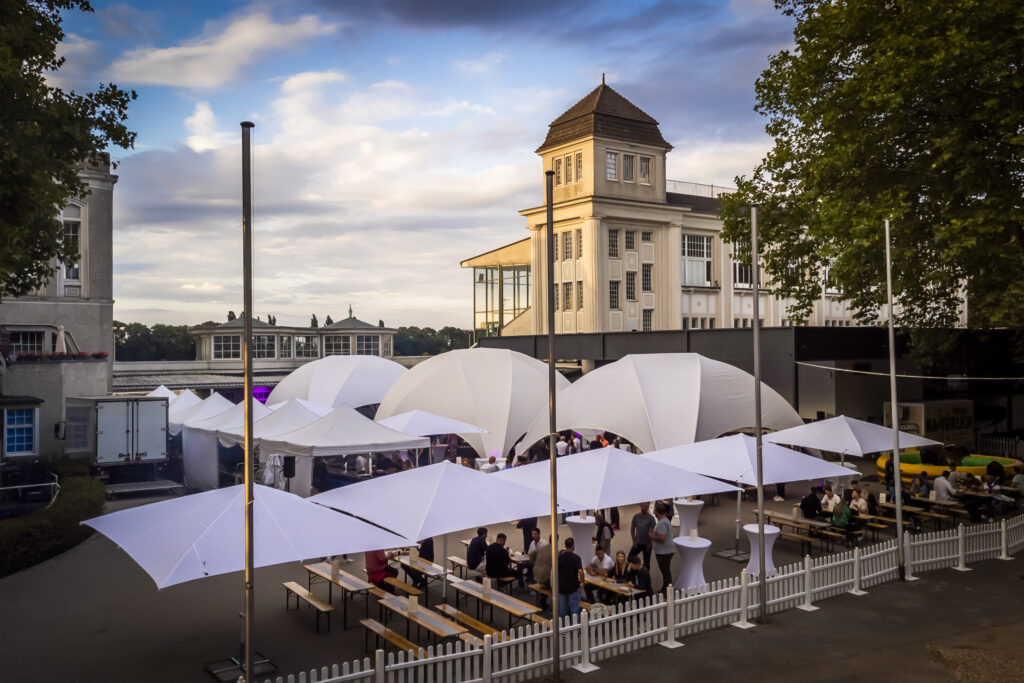 Durch die Kombination aus Alter Wetthalle, Tribüne und Freiflächen entsteht ein Veranstaltungsgelände, auf dem sich kleine wie große Konzepte individuell entwickeln lassen und Gäste den Tag über immer wieder neue Eindrücke erleben.