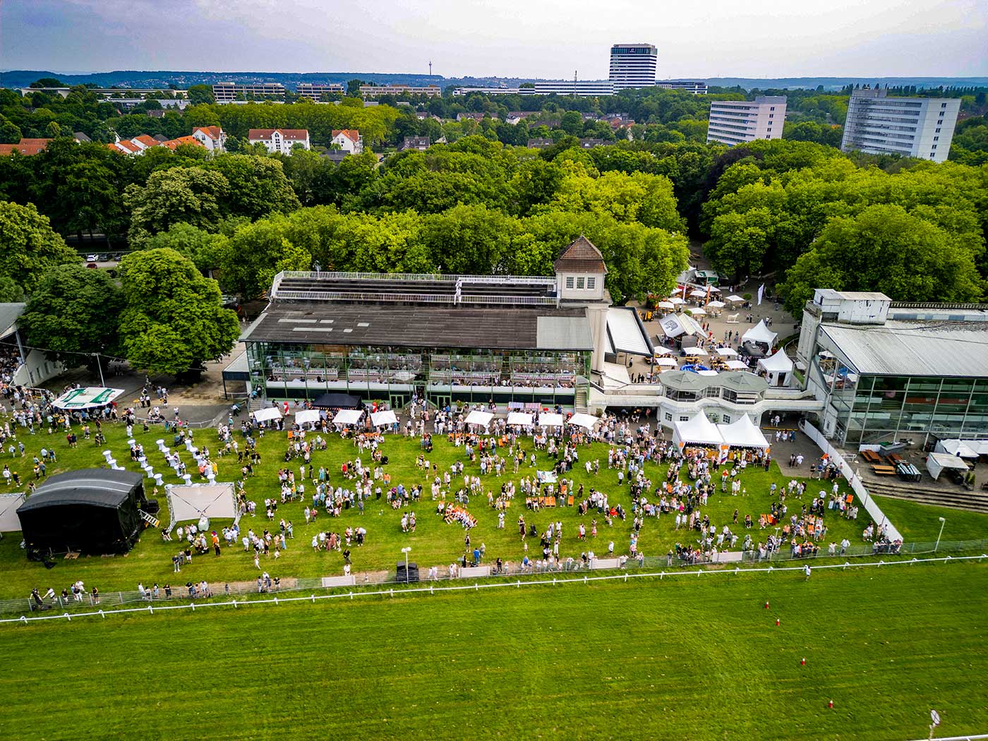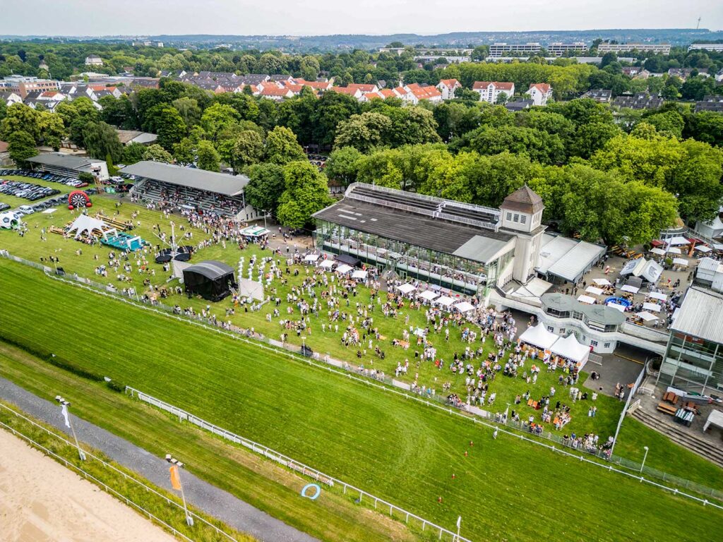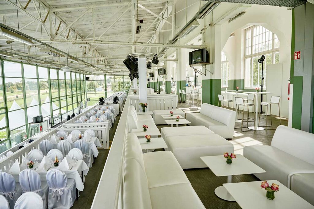 Das gesamte Gelände der Galopprennbahn Dortmund bietet zentral gelegen außergewöhnlich viel Raum für Veranstaltungen jeder Größenordnung. Die Kombination aus weitläufigen Außenflächen, mehreren Gebäuden und variabel nutzbaren Bereichen ermöglicht Konzepte für Großveranstaltungen ideal umzusetzen.
