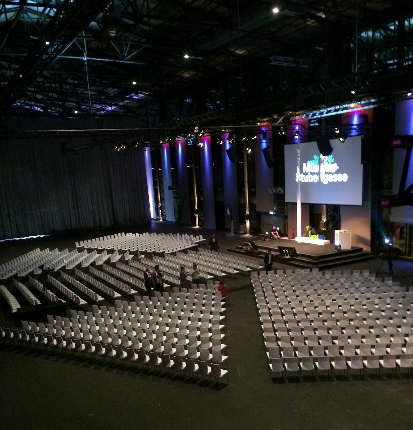 Ob Kongresse, Tagungen, Präsentationen, Messen, Galaabende oder Firmen-Events – die Kraftzentrale bietet die perfekte Bühne für jedes Event. Die vielseitige Halle lässt sich je nach Bedarf in verschiedenen Bestuhlungsarten arrangieren: