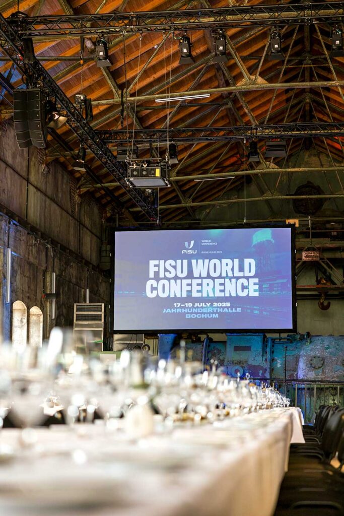 Die Rhine‑Ruhr 2025 FISU World University Games fanden vom 16. bis 27. Juli 2025 in mehreren Städten Nordrhein‑Westfalens (u. a. Bochum, Duisburg, Essen) sowie Berlin statt. Rund 8.500 teilnehmende Studierende und Offizielle aus über 100 Ländern traten in 18 Sportarten mit insgesamt etwa 234 Medaillenentscheidungen gegeneinander an.