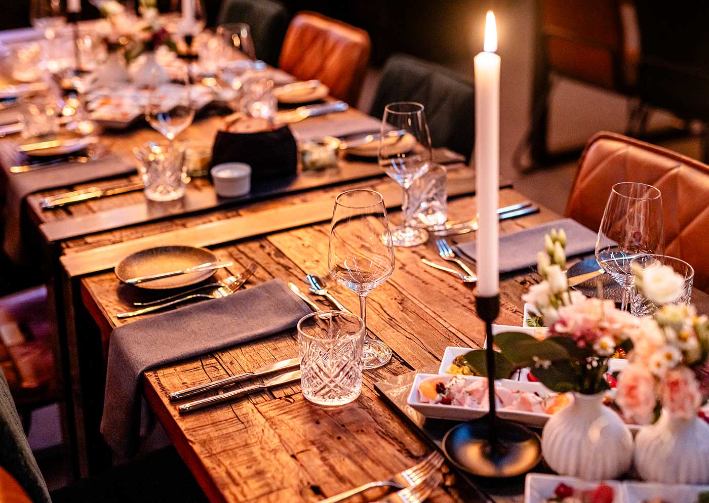 Stilvolle Bankettevents in der eigens hergerichteten Veranstaltungshalle in Verbindung mit einem abgestimmten Lichtkonzept innen und außen in frei wählbaren Farbzusammenstellungen und –abfolgen hinterlassen bei den Gästen einen unvergesslichen Eindruck.
