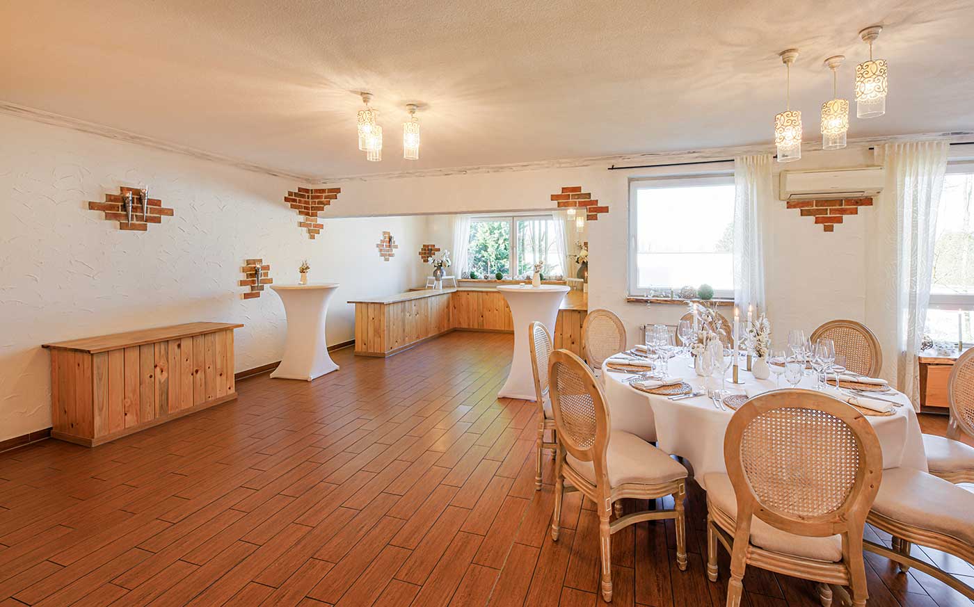 Bei dem Raumdesign wurde darauf geachtet, dass wir einen Raum kreieren, der das perfekte Ambiente für kleinere Gesellschaften wie beispielsweise Geburtstage, Taufen, kleine Betriebsfeiern oder aber Vereinstagungen mit bis zu 40 Personen bietet.