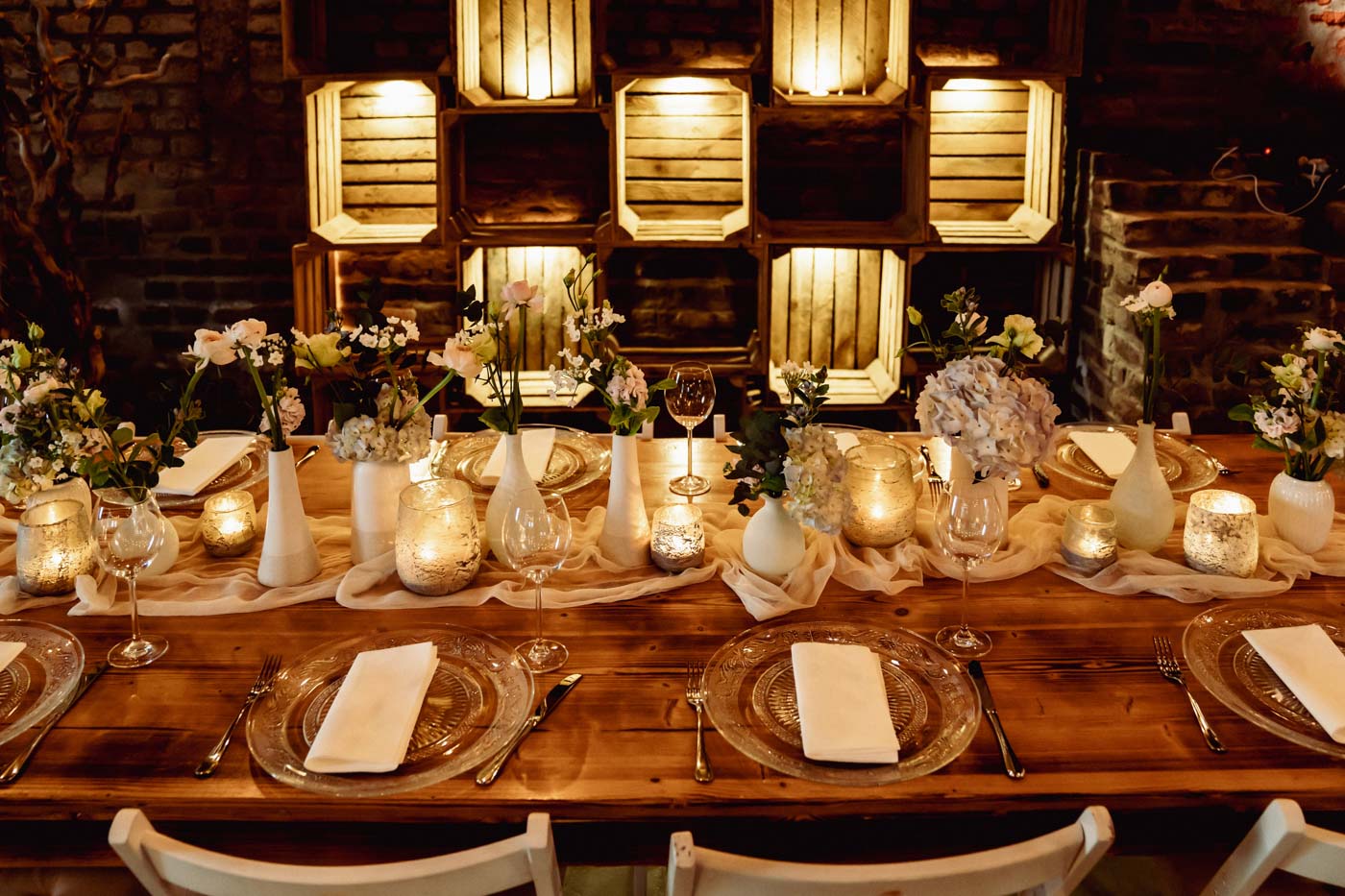 Eine festliche Beleuchtung im Außenbereich und zahlreiche Lichtinstallationen im Innenbereich unterstreichen das individuelle Farbkonzept Ihrer Veranstaltung. Die Kornscheune besitzt eine leistungsfähige Heizanlage ist sehr gut für Winterevents geeignet.