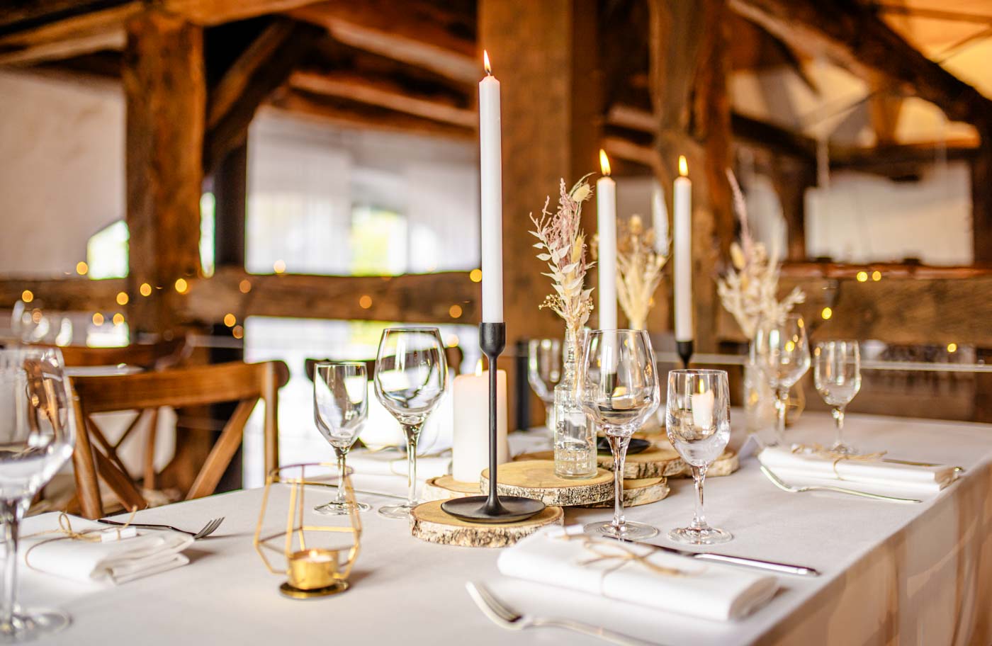 Feiern Sie Ihren persönlichen Anlass im Voss am Chaussee in Unna – einer einzigartigen Eventlocation, die Tradition und Moderne auf wunderbare Weise vereint. Das Fachwerkhaus aus dem 18. Jahrhundert bietet eine besondere Atmosphäre, in der Geschichte lebendig wird. Die voll ausgestattete Deele schafft eine perfekte Symbiose aus alt und neu, indem sie den historischen Charme des Gebäudes mit modernen Annehmlichkeiten verbindet. Bei aufwändigen Sanierungsarbeiten wurde das historische Gemäuer und Gebälk sorgfältig erhalten und liebevoll aufgearbeitet, sodass der Charakter des Hauses in jeder Ecke spürbar bleibt.
